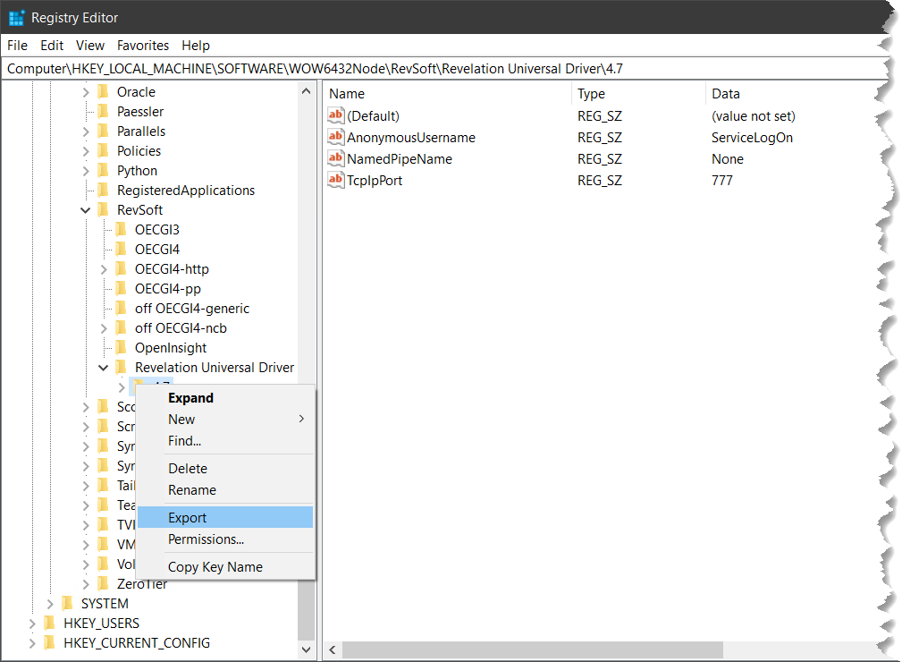 HKEY_LOCAL_MACHINE\SOFTWARE\WOW6432Node\RevSoft\Revelation Universal Driver\4.7