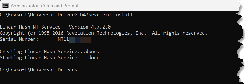 - Open a command prompt as administrator and change to the C:\Revsoft\Universal Driver directory.